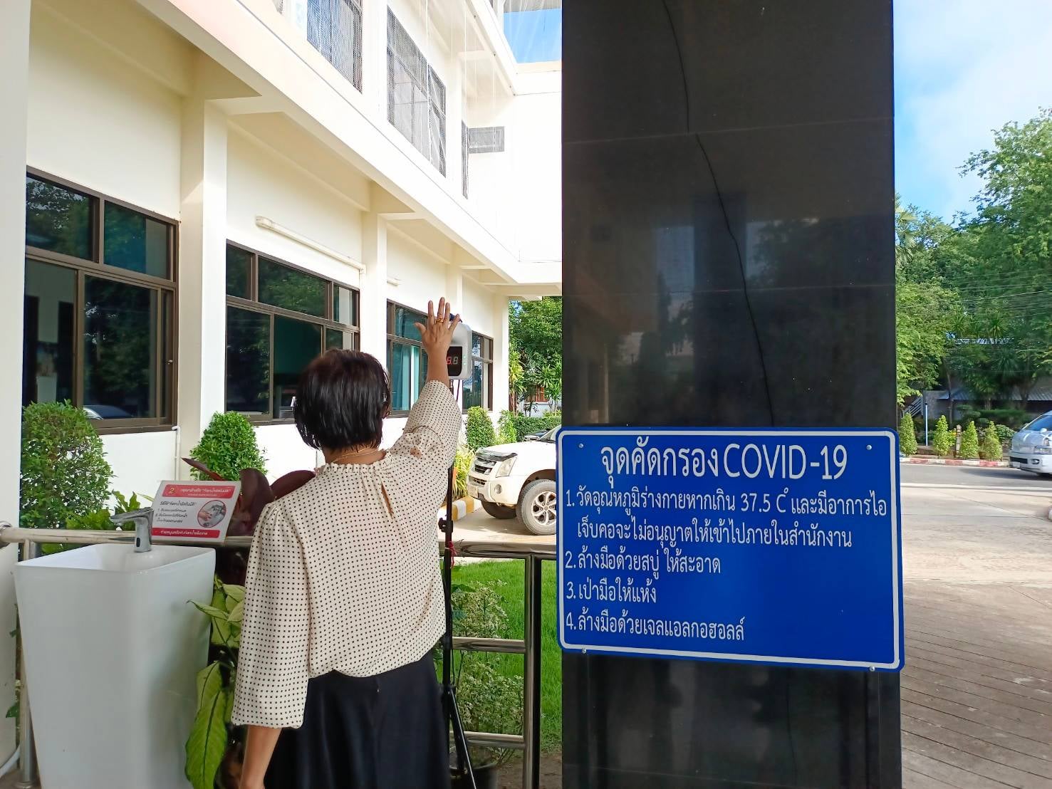 ได้จัดตั้งจุดคัดกรองด้วยเครื่องวัดอุณหภูมิ บริเวณทางเข้าด้านหน้สำนักงาน ตรวจวัดไข้และคัดกรองข้าราชการ เจ้าหน้าที่ และประชาชนที่มาติดต่อราชการ เพื่อเฝ้าระวังและป้องกันการแพร่ระบาด เชื้อไวรัส COVID – 19 ตั้งแต่เวลา 07.00 น. – 16.30 น. ให้เป็นไปอย่างต่อเนื่องเป็นประจำทุกวัน จนกว่าสถานการณ์จะเข้าสู่สภาวะปกติ