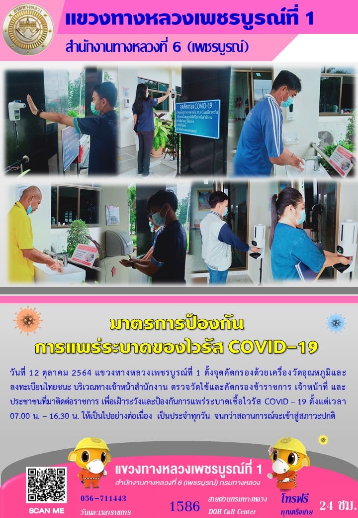 ได้จัดตั้งจุดคัดกรองด้วยเครื่องวัดอุณหภูมิ บริเวณทางเข้าด้านหน้สำนักงาน ตรวจวัดไข้และคัดกรองข้าราชการ เจ้าหน้าที่ และประชาชนที่มาติดต่อราชการ เพื่อเฝ้าระวังและป้องกันการแพร่ระบาด เชื้อไวรัส COVID – 19 ตั้งแต่เวลา 07.00 น. – 16.30 น. ให้เป็นไปอย่างต่อเนื่องเป็นประจำทุกวัน จนกว่าสถานการณ์จะเข้าสู่สภาวะปกติ