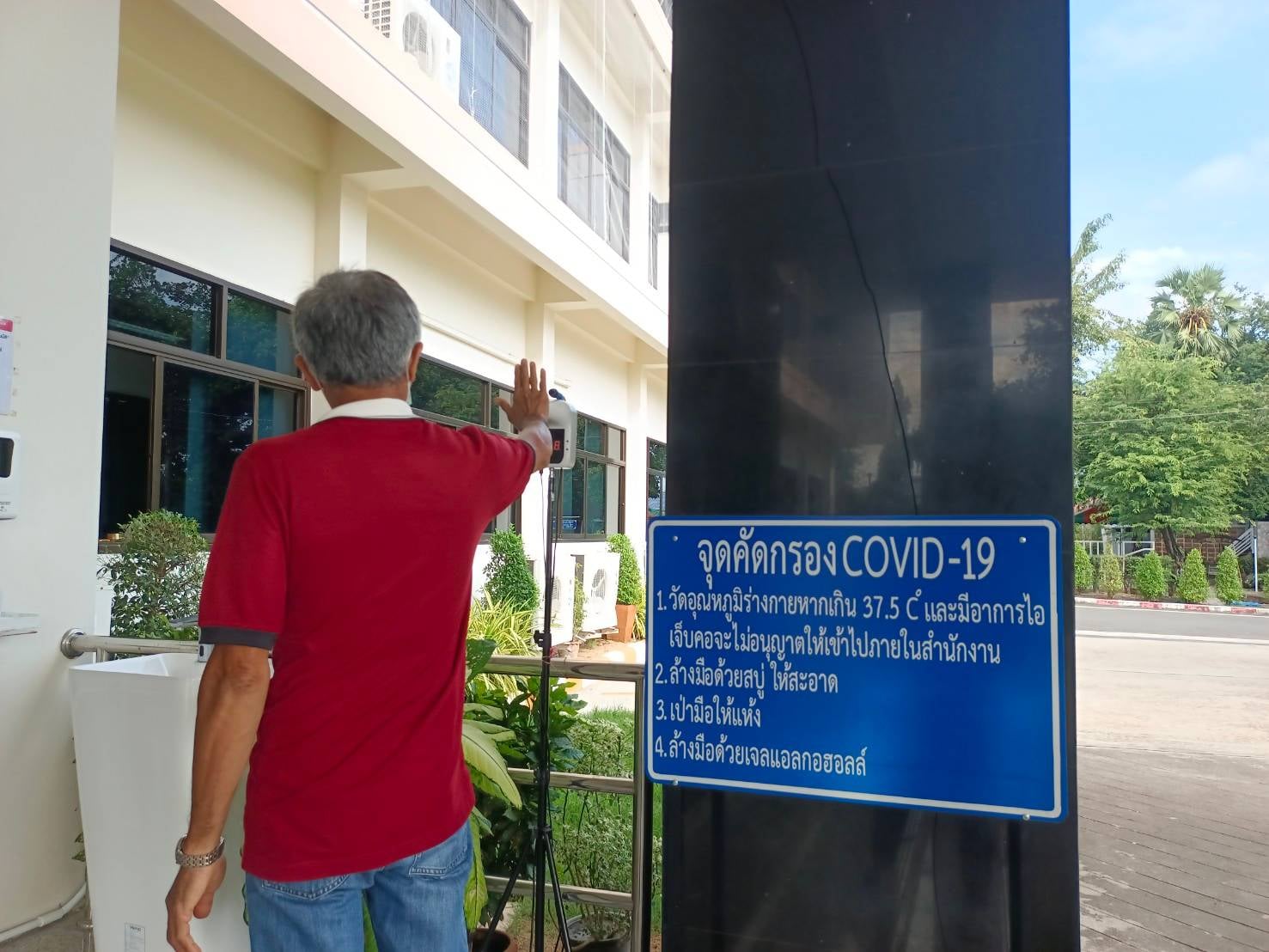 ได้จัดตั้งจุดคัดกรองด้วยเครื่องวัดอุณหภูมิ บริเวณทางเข้าด้านหน้สำนักงาน ตรวจวัดไข้และคัดกรองข้าราชการ เจ้าหน้าที่ และประชาชนที่มาติดต่อราชการ เพื่อเฝ้าระวังและป้องกันการแพร่ระบาด เชื้อไวรัส COVID – 19 ตั้งแต่เวลา 07.00 น. – 16.30 น. ให้เป็นไปอย่างต่อเนื่องเป็นประจำทุกวัน จนกว่าสถานการณ์จะเข้าสู่สภาวะปกติ