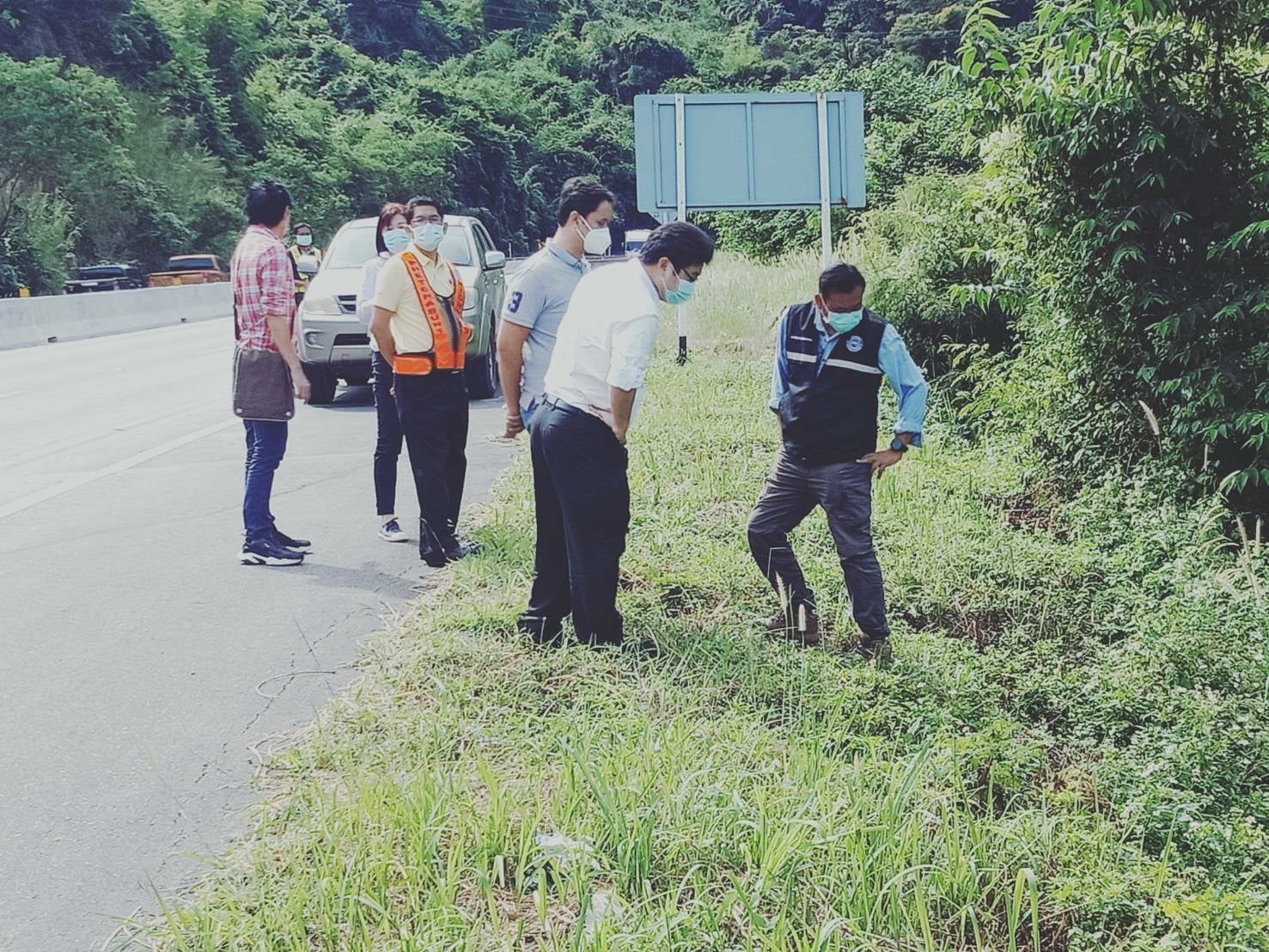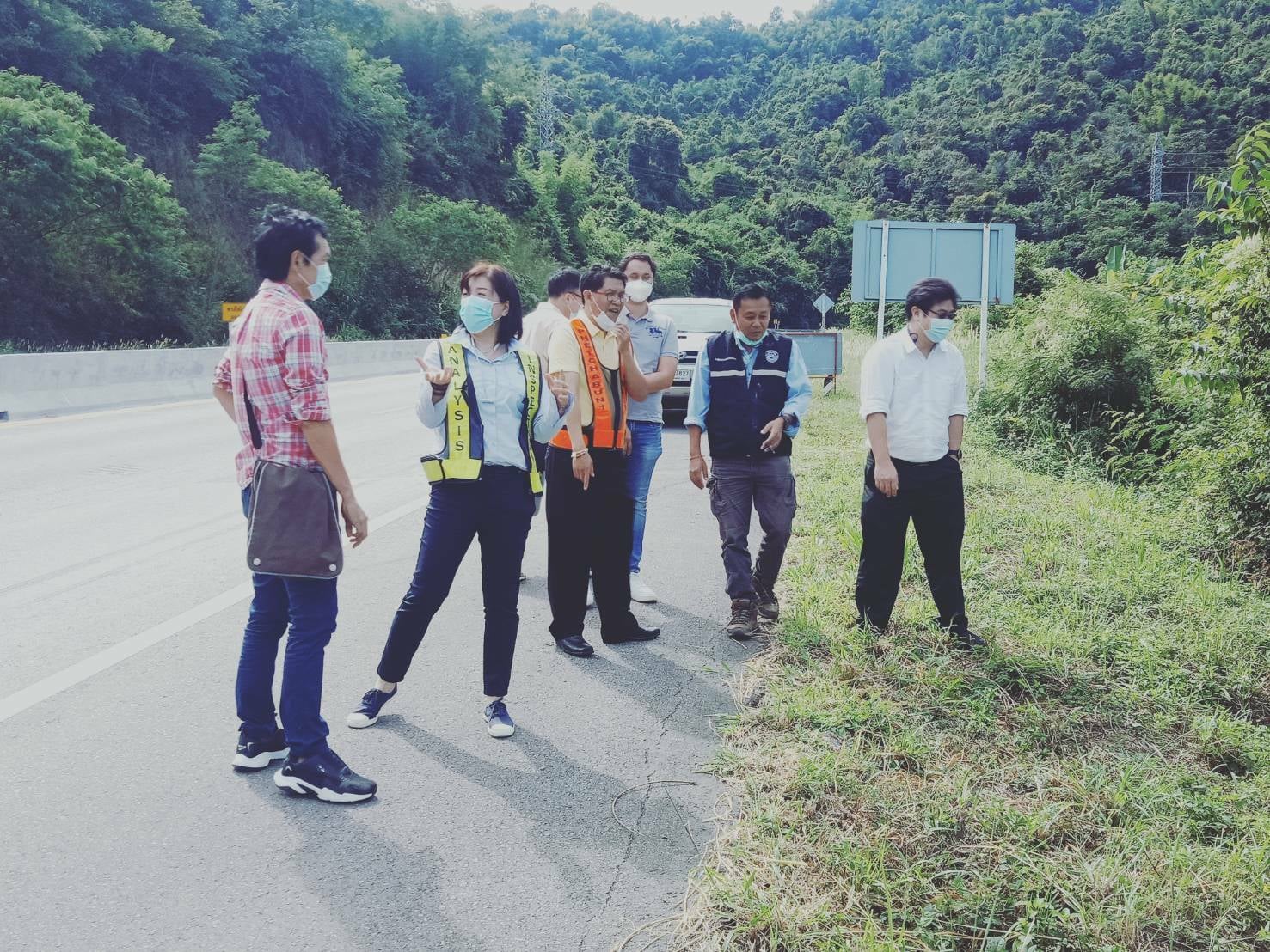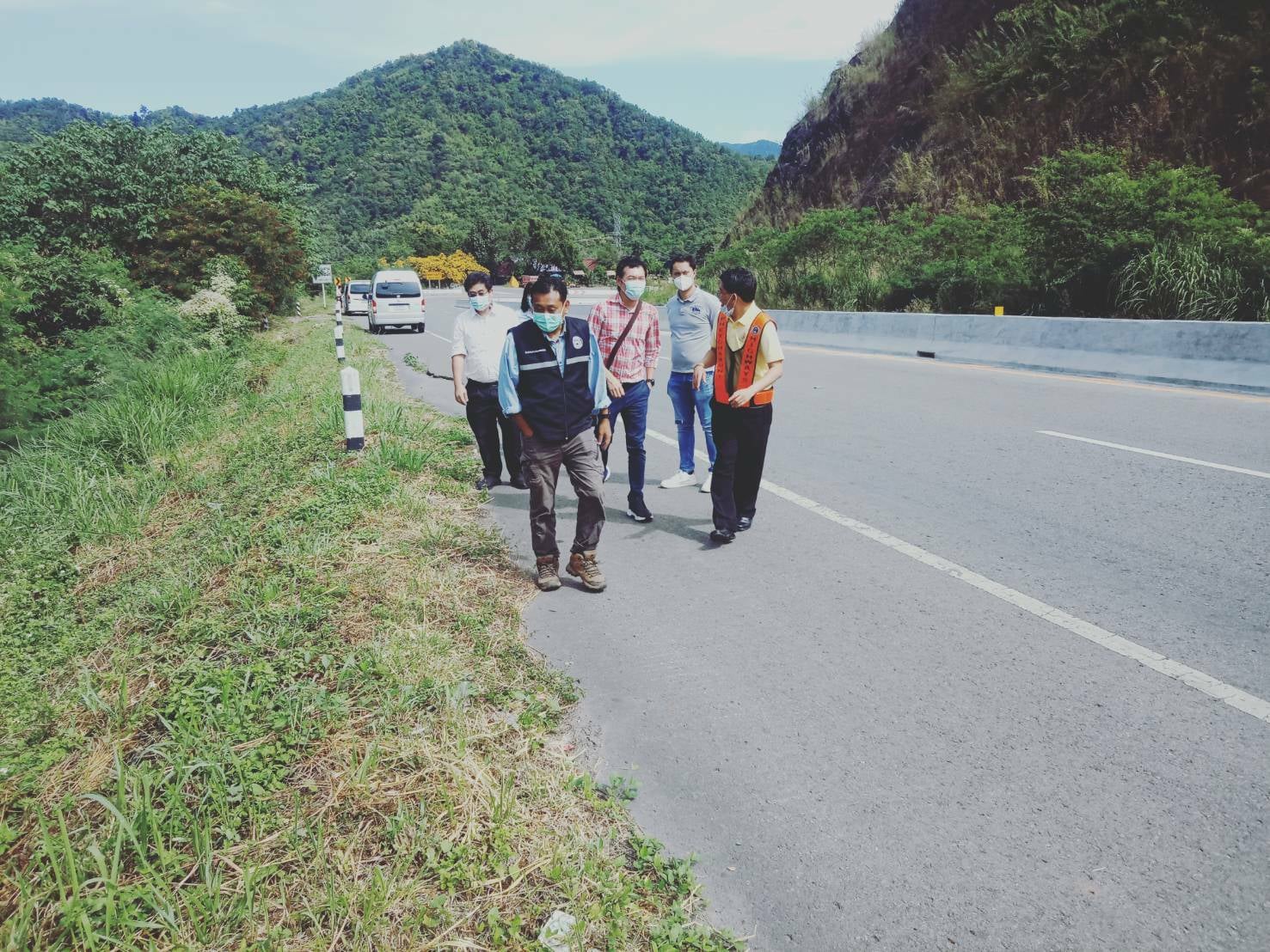 ดร.พฤทธิพงศ์ สิงหติราช รองผู้อำนวยการสำนักงานทางหลวงที่ 6 และนายวันปิยะ ภุมมะภูติ ผู้อำนวยการแขวงทางหลวงเพชรบูรณ์ที่ 1 ร่วมลงพื้นที่ตรวจสายทาง คันทางทรุดตัว ในทางหลวงหมายเลข 12 ตอน เข็กน้อย – แยกอาเซียน กม.324+300 กับเจ้าหน้าที่สำรวจและออกแบบ กรมทางหลวง