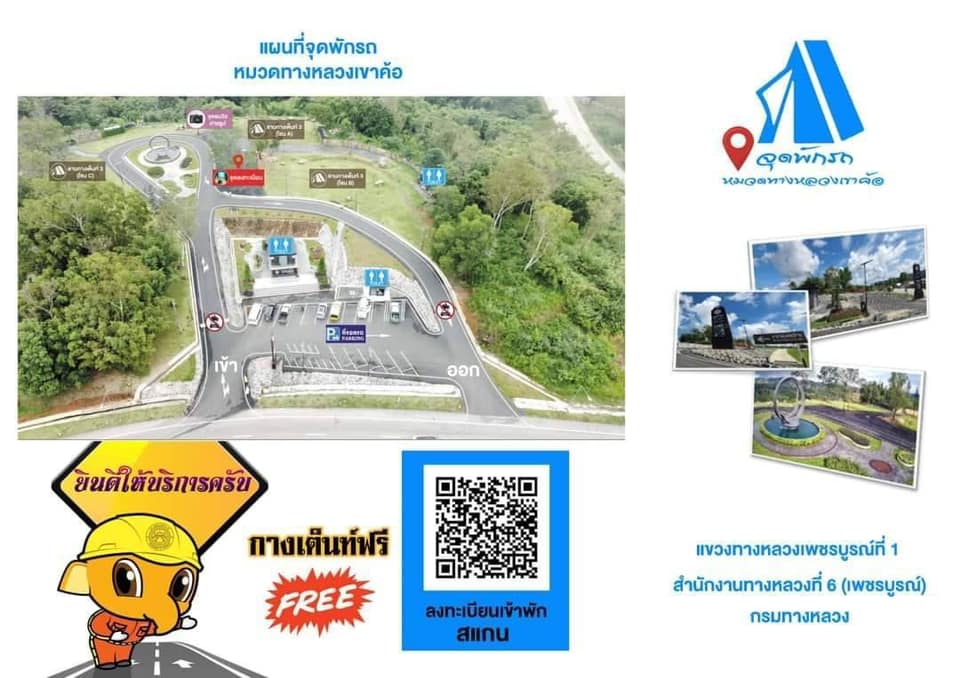 กรมทางหลวง โดยแขวงทางหลวงเพชรบูรณ์ที่ 1 เชิญชวน พักคน พักรถ ลดอุบัติเหตุ ณ จุดพักรถหมวดทางหลวงเขาค้อ เพื่อช่วยลดอุบัติเหตุบนทางหลวง ให้ผู้ขับขี่ได้หยุดแวะพักรถ และผ่อนคลายอิริยาบท ด้วยสิ่งอำนวยความสะดวกต่างๆ เช่น ลานจอดรถที่กว้างขวางร่มรื่น, ห้องน้ำสำหรับประชาชนทั่วไป พร้อมบริการลานกางเต็นท์ (ณ ลานกางเต็นท์รถทุกชนิดไม่สามารถขึ้นไปจอดได้ เพื่อความปลอดภัยของผู้เข้าพักและนักท่องเที่ยว) สำหรับชมทะเลหมอกและชมพระอาทิตย์ขึ้นในยามเช้า ชมพระจันทร์ขึ้นในยามค่ำคืน