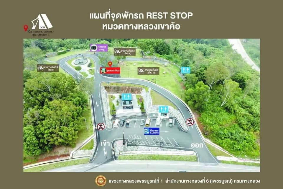 กรมทางหลวง โดยแขวงทางหลวงเพชรบูรณ์ที่ 1 เชิญชวน พักคน พักรถ ลดอุบัติเหตุ ณ จุดพักรถหมวดทางหลวงเขาค้อ เพื่อช่วยลดอุบัติเหตุบนทางหลวง ให้ผู้ขับขี่ได้หยุดแวะพักรถ และผ่อนคลายอิริยาบท ด้วยสิ่งอำนวยความสะดวกต่างๆ เช่น ลานจอดรถที่กว้างขวางร่มรื่น, ห้องน้ำสำหรับประชาชนทั่วไป พร้อมบริการลานกางเต็นท์ (ณ ลานกางเต็นท์รถทุกชนิดไม่สามารถขึ้นไปจอดได้ เพื่อความปลอดภัยของผู้เข้าพักและนักท่องเที่ยว) สำหรับชมทะเลหมอกและชมพระอาทิตย์ขึ้นในยามเช้า ชมพระจันทร์ขึ้นในยามค่ำคืน
