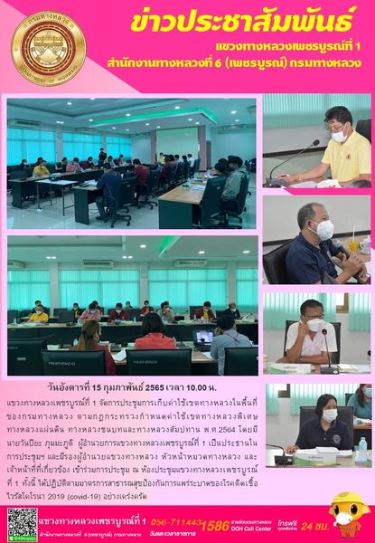 วันอังคารที่ 15 กุมภาพันธ์ 2565 เวลา 10.00 น. แขวงทางหลวงเพชรบูรณ์ที่ 1 จัดการประชุมการเก็บค่าใช้เขตทางหลวงในพื้นที่ของกรมทางหลวง ตามกฎกระทรวงกำหนดค่าใช้เขตทางหลวงพิเศษ ทางหลวงแผ่นดิน ทางหลวงชนบทและทางหลวงสัมปทาน พ.ศ.2564 โดยมี นายวันปิยะ ภุมมะภูติ ผู้อำนวยการแขวงทางหลวงเพชรบูรณ์ที่ 1 เป็นประธานในการประชุมฯ และมีรองผู้อำนวยแขวงทางหลวง หัวหน้าหมวดทางหลวง และเจ้าหน้าที่ที่เกี่ยวข้อง เข้าร่วมการประชุม ณ ห้องประชุมแขวงทางหลวงเพชรบูรณ์ที่ 1 ทั้งนี้ ได้ปฏิบัติตามมาตรการสาธารณสุขป้องกันการแพร่ระบาดของโรคติดเชื้อไวรัสโคโรนา 2019 (covid-19) อย่างเคร่งครัด