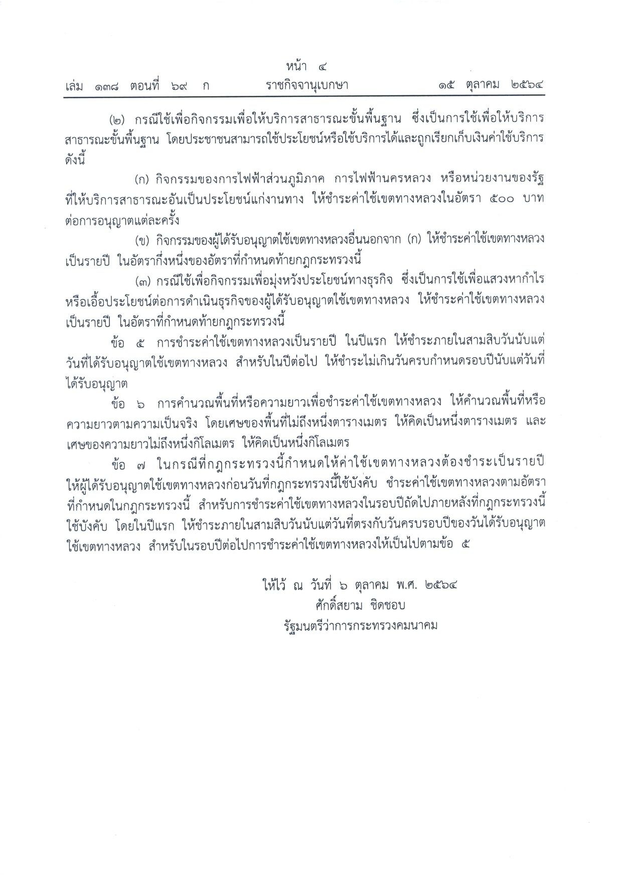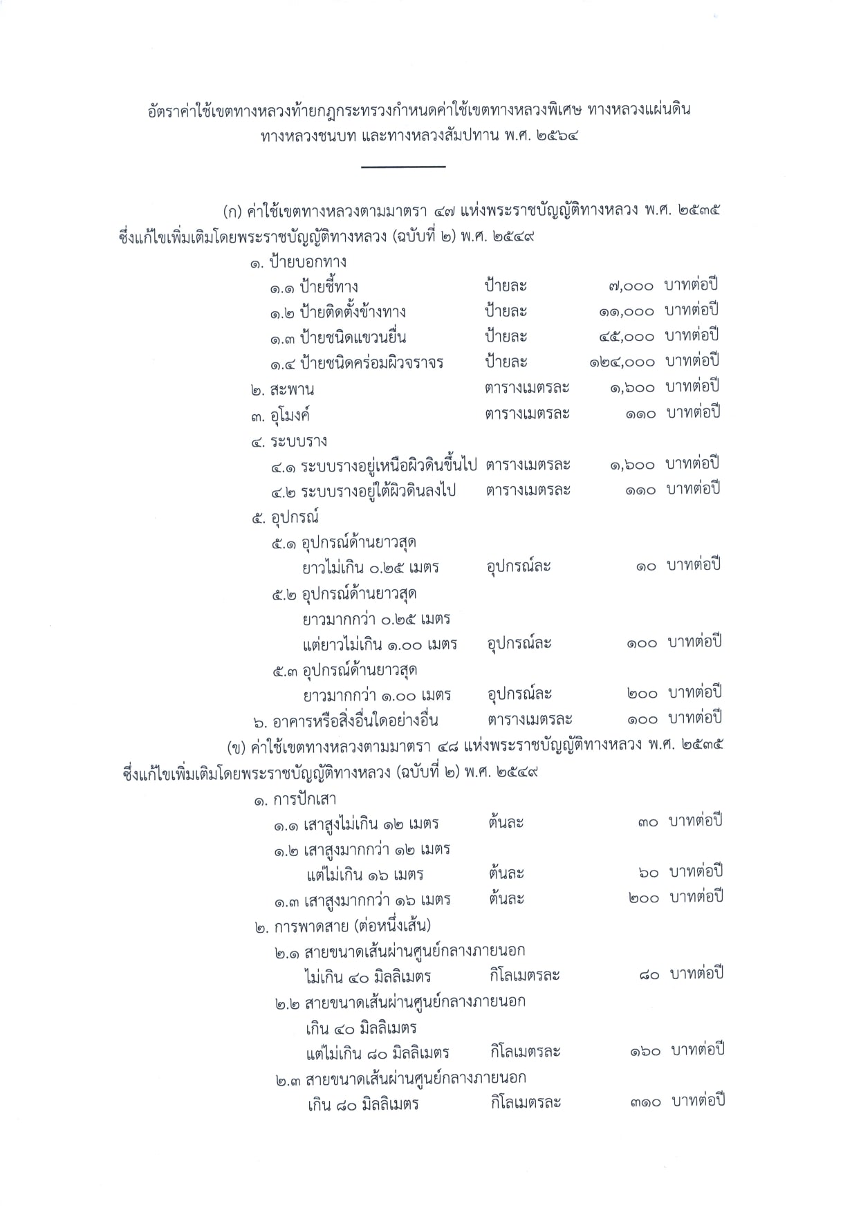 กฎกระทรวง กำหนดค่าใช้เขตทางหลวงพิเศษ ทางหลวงแผ่นดิน ทางหลวงชนบท และทางหลวงสัมปทาน พ.ศ.2564