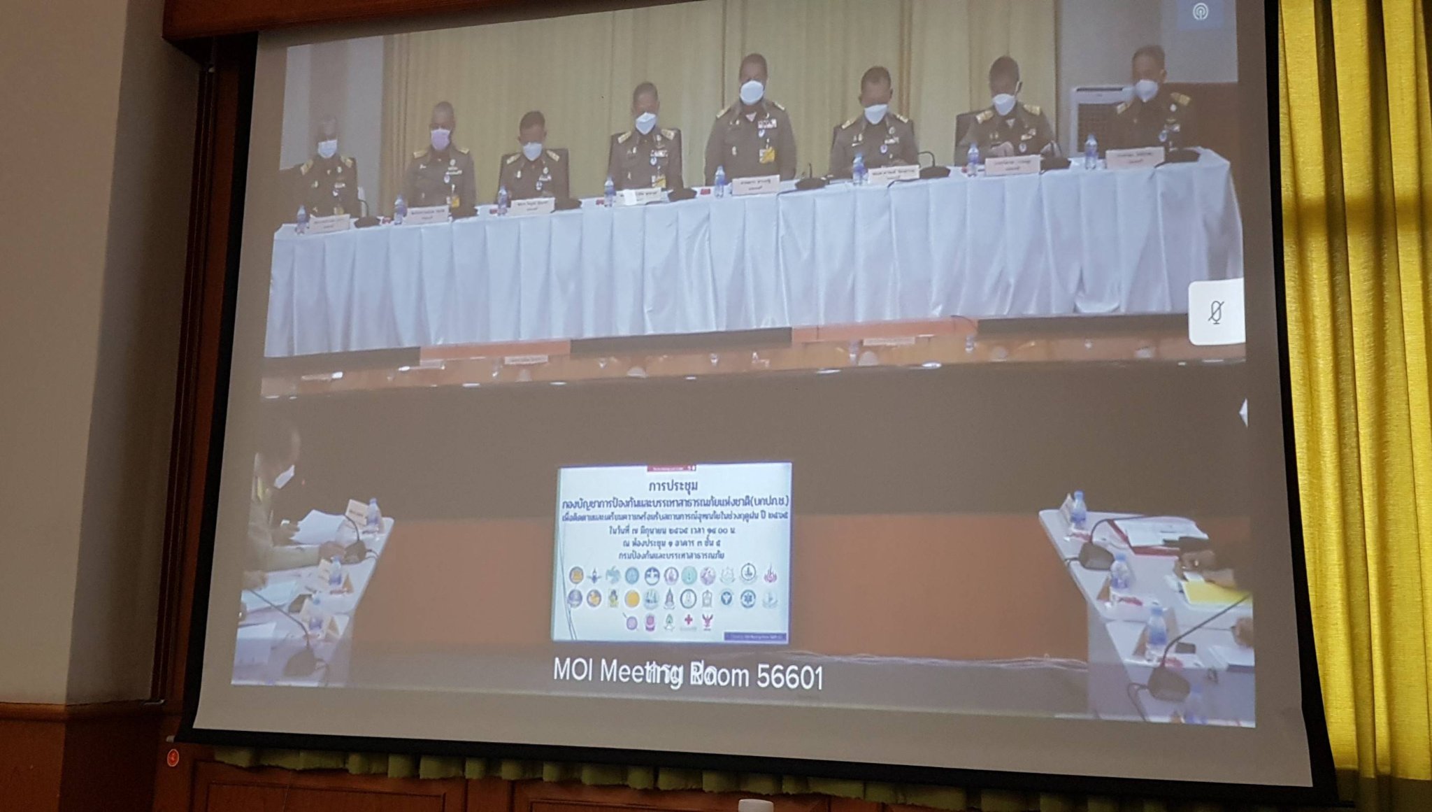 ประชุมทางไกลผ่านระบบ VDO Conference จากห้องประชุม 1 อาคาร 3 ชั้น 5 กรมป้องกันและบรรเทาสาธารณภัย