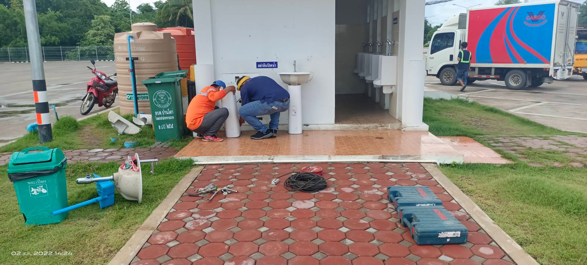 ซ่อมแซมสุขภัณฑ์ห้องน้ำจุดพักรถบ้านโตก ที่ถูกทุบทำลายเสร็จเรียบร้อยแล้ว สามารถใช้งานได้เป็นปกติ เมื่อเวลาประมาณ 15.00 น.
