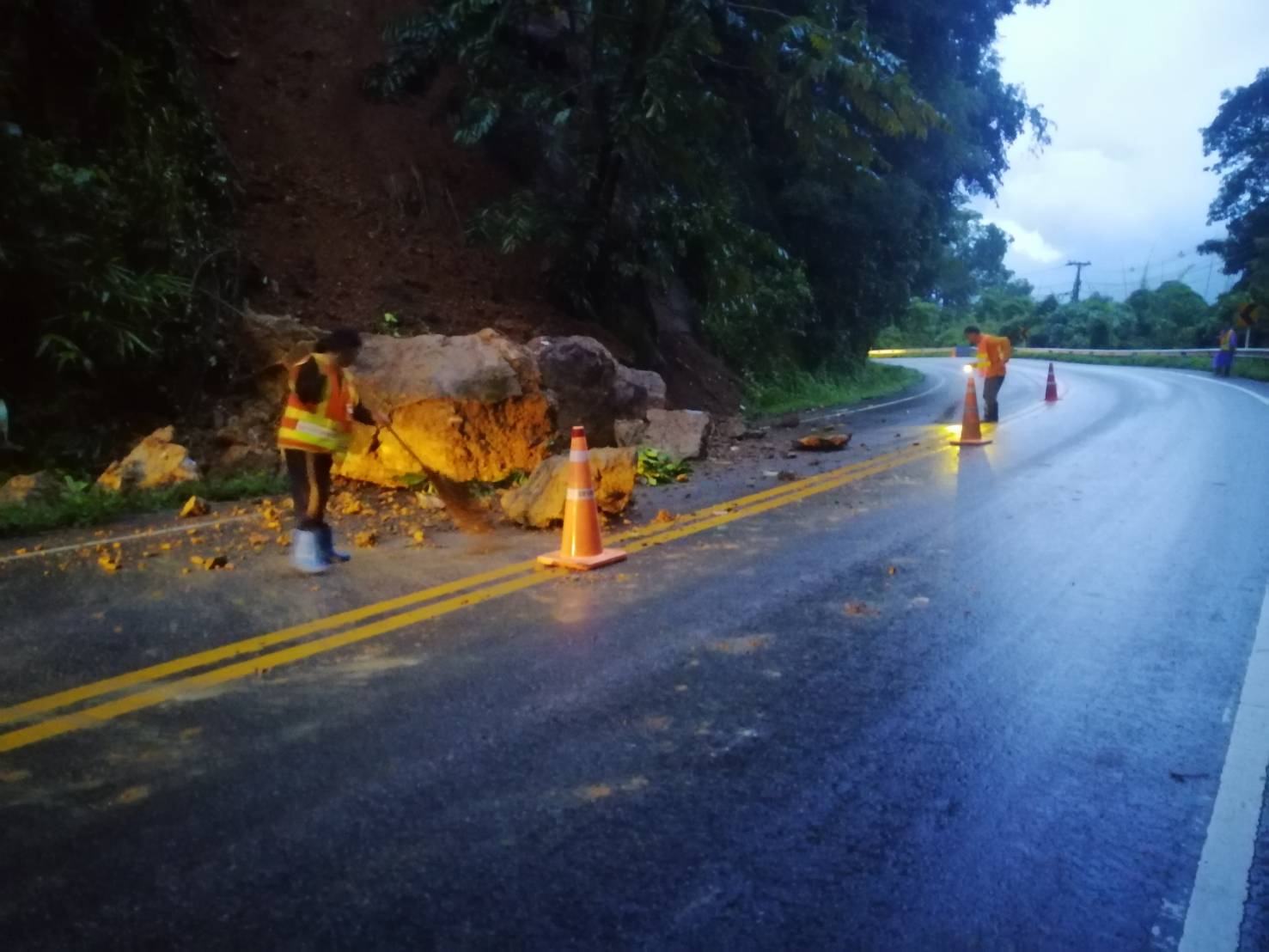 วันนี้ (1 ตุลาคม 2565) เวลา 17.30 น. เกิดฝนตกหนักต่อเนื่องในพื้นที่ เป็นเหตุให้ดินสไลด์และหินร่วงปิดทับผิวทาง 1 ช่องจราจร บนทางหลวงหมาย 12 ตอน น้ำดุก - ห้วยซำมะคาว ที่กม.380+150 (ด้านซ้ายทาง)