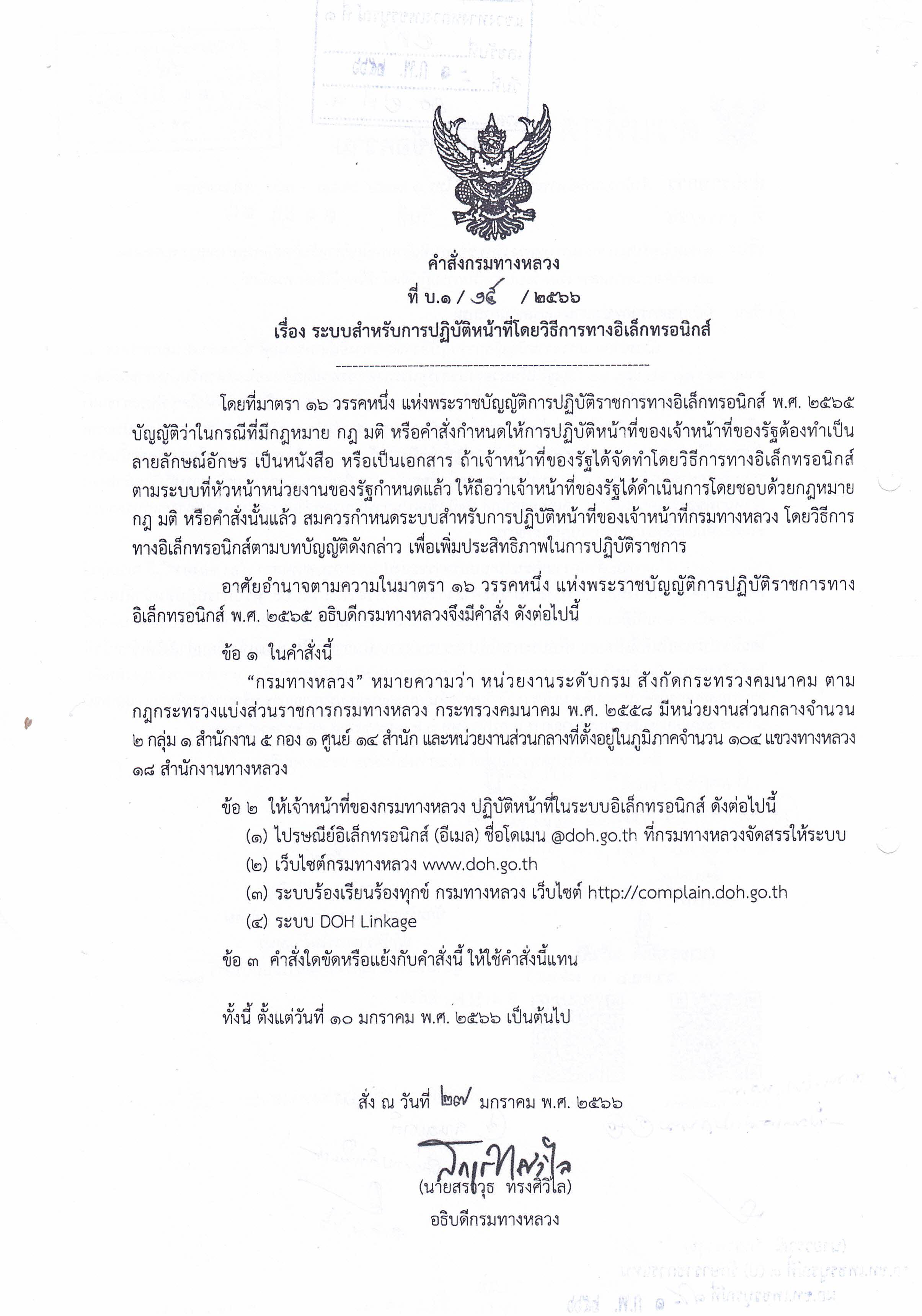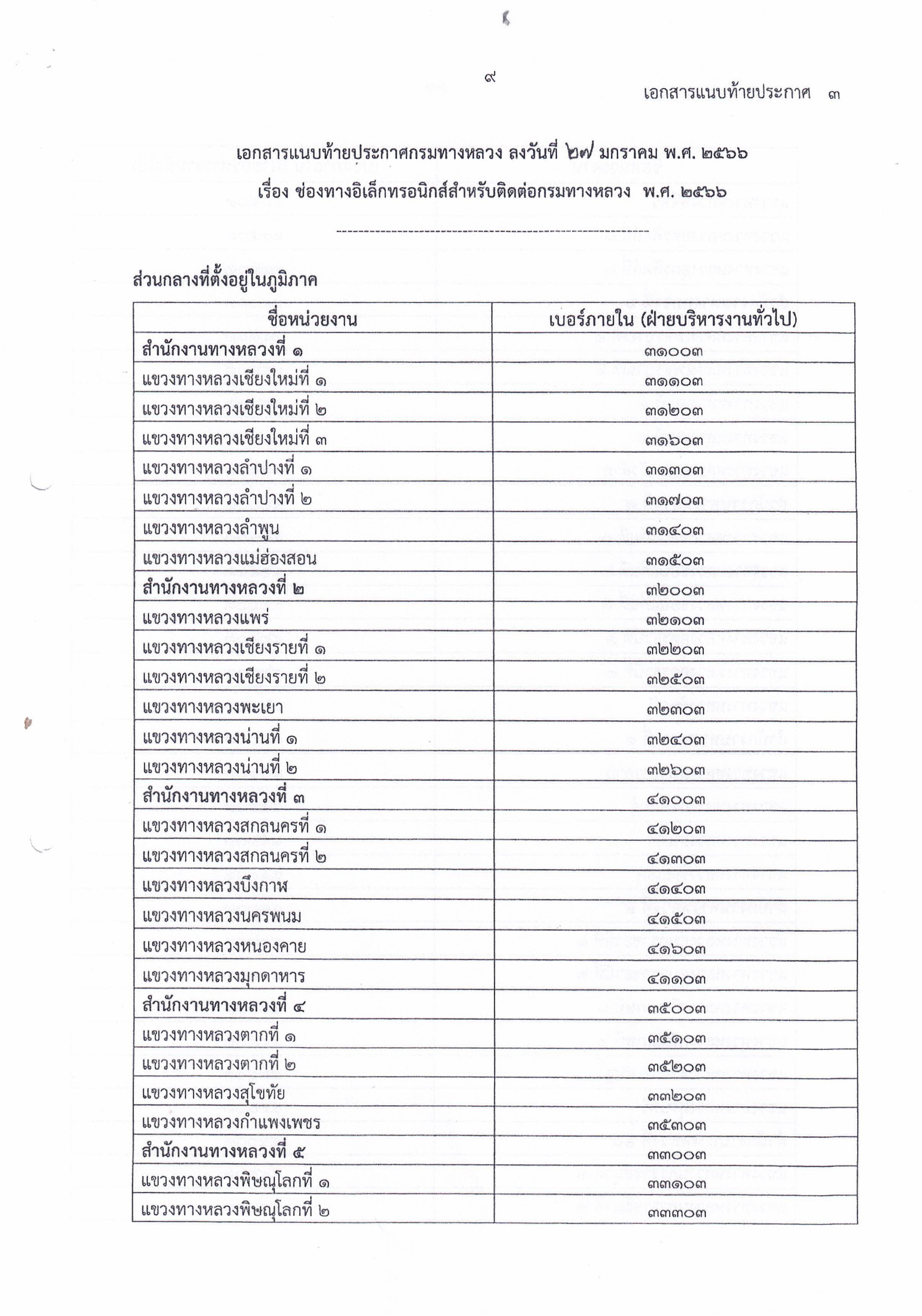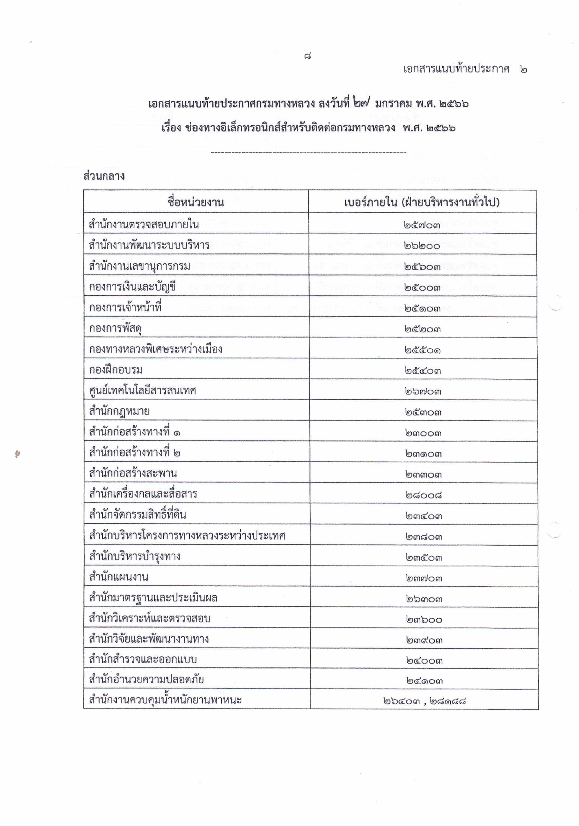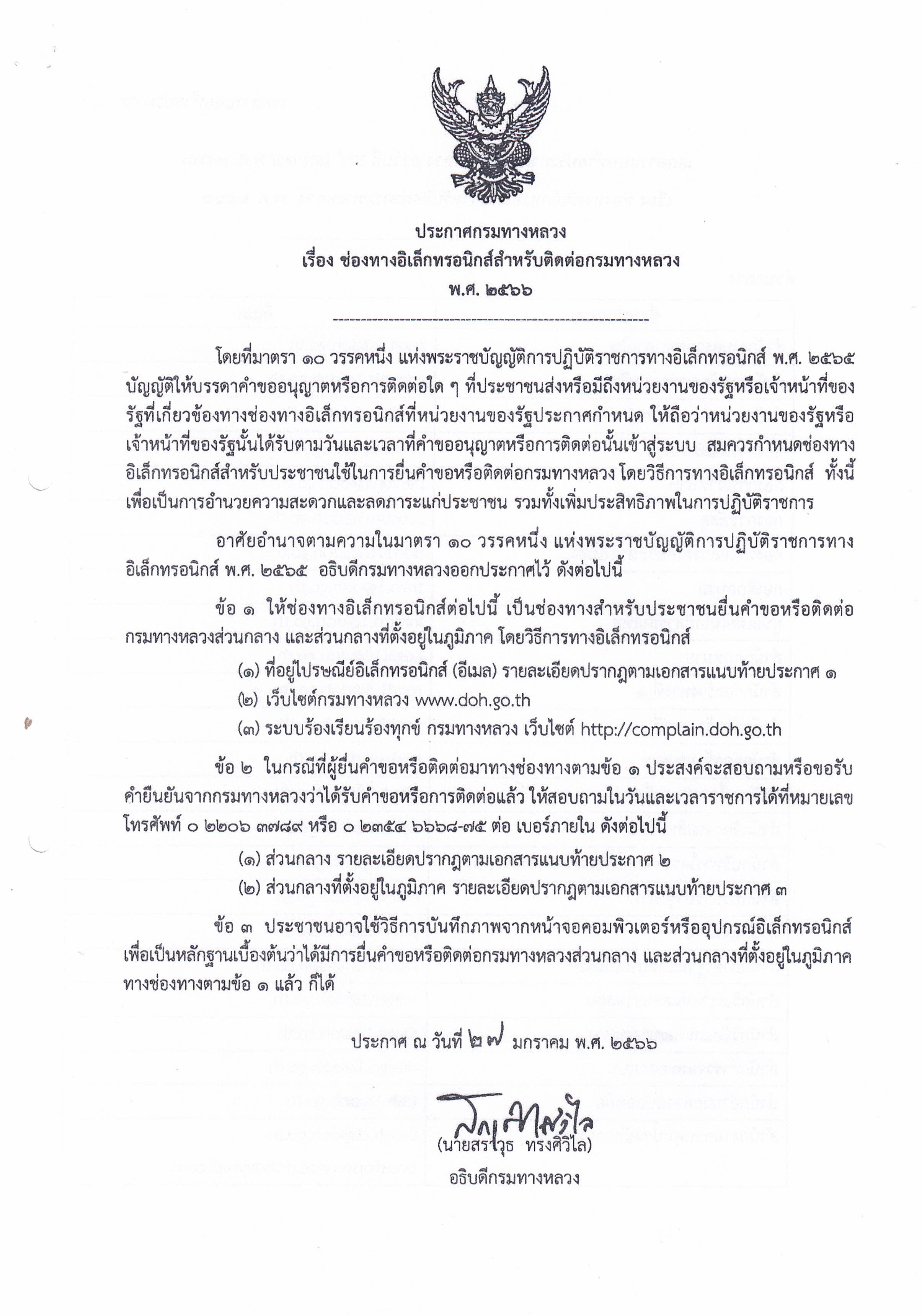ประกาศกรมทางหลวง เรื่อง ช่องทางอิเล็กทรอนิกส์สำหรับติดต่อกรมทางหลวงพ.ศ. ๒๕๖๖