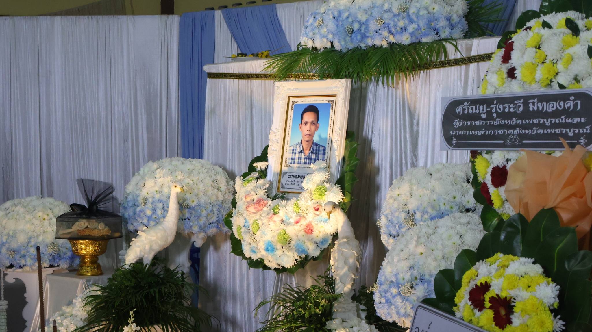 เข้าร่วมพิธีสวดพระอภิธรรม นายสมพงษ์ ศรีสุข ผู้เสียชีวิตจากกรณีอุบัติเหตุโครงเหล็ก LG ถล่ม บริเวณถนนพระราม 2