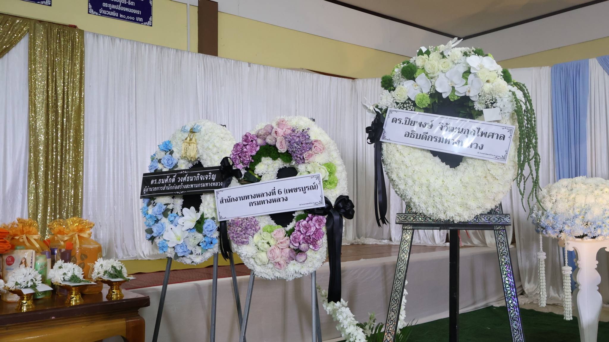 นายปิยพงษ์ จิวัฒนกุลไพศาล อธิบดีกรมทางหลวง (ประธาน) พร้อมด้วย นายสมบูรณ์ เทียนธรรมชาติ ผู้อำนวยการสำนักสำรวจและออกแบบ, นายธนศักดิ์ วงศ์ธนากิจเจริญ ผู้อำนวยการสำนักก่อสร้างสะพาน, นายวีระพล วงศ์วิเชียร เลขานุการกรม , นายทวีศักดิ์ รุจิจรรยาวัฒน์ ผู้อำนวยการสำนักงานทางหลวงที่ 6, นายเดชา พรวนพิทักษ์ ผู้อำนวยการแขวงทางหลวงเพชรบูรณ์ที่ 1 พร้อมด้วยคณะเจ้าหน้าที่ สำนักงานทางหลวงที่ 6 (เพชรบูรณ์) และ แขวงทางหลวงในสังกัด เข้าร่วมพิธีสวดพระอภิธรรม นายสมพงษ์ ศรีสุข ผู้เสียชีวิตจากกรณีอุบัติเหตุโครงเหล็ก LG ถล่ม บริเวณถนนพระราม 2 ณ วัดคลองยางศิริธรรม ตำบลภูน้ำหยด อำเภอวิเชียรบุรี จังหวัดเพชรบูรณ์ โดยกรมทางหลวงได้เป็นเจ้าภาพในพิธีสวดพระอภิธรรม