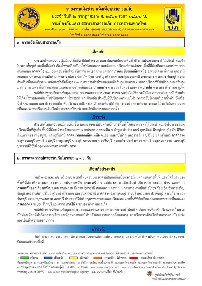 แจ้งข่าว แจ้งเตือนสาธารณภัย ประจำวันที่ 2 กรกฎาคม 2562