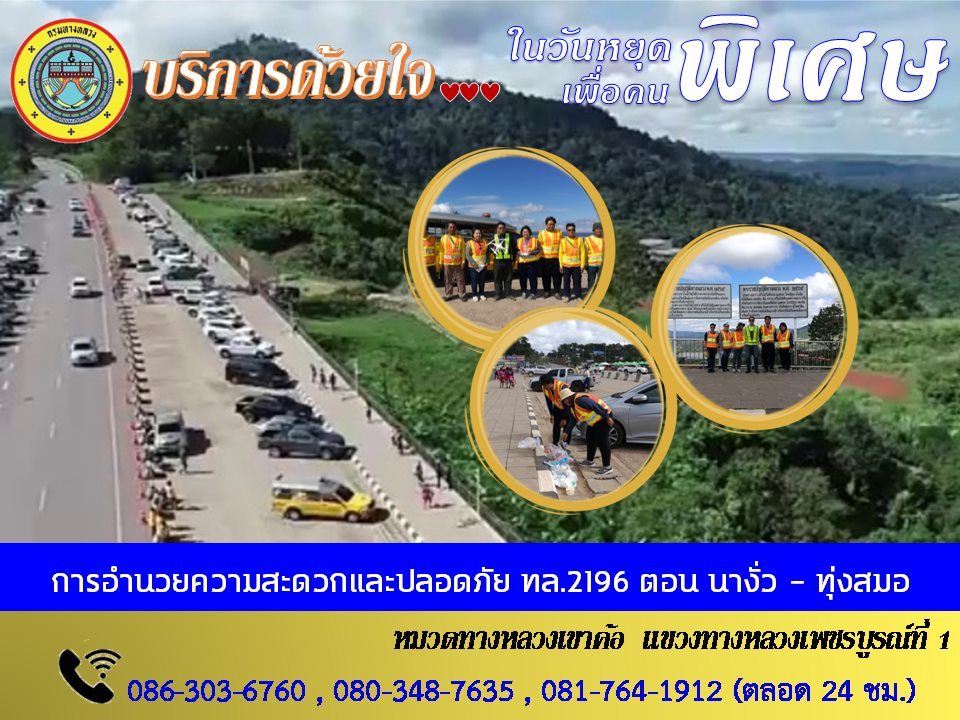แขวงทางหลวงเพชรบูรณ์ที่ 1 ขอรายงานการปฏิบัติงาน เพื่ออำนวยความสะดวกและปลอดภัย ในช่วงวันหยุดยาว วันที่ 2 – 5 พฤศจิกายน 2562 (วันหยุดพิเศษ 4 – 5 พ.ย. 62) ดังนี้