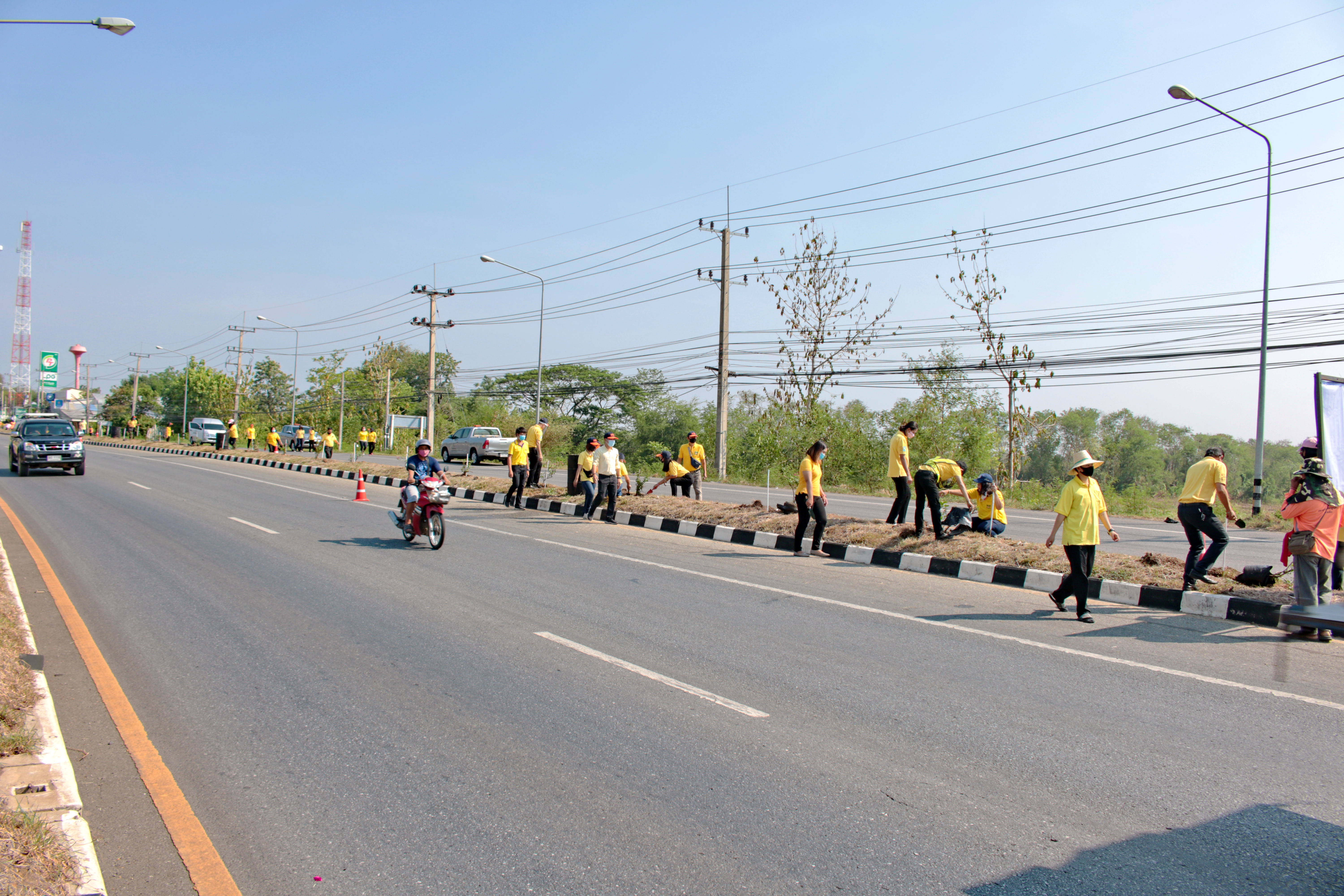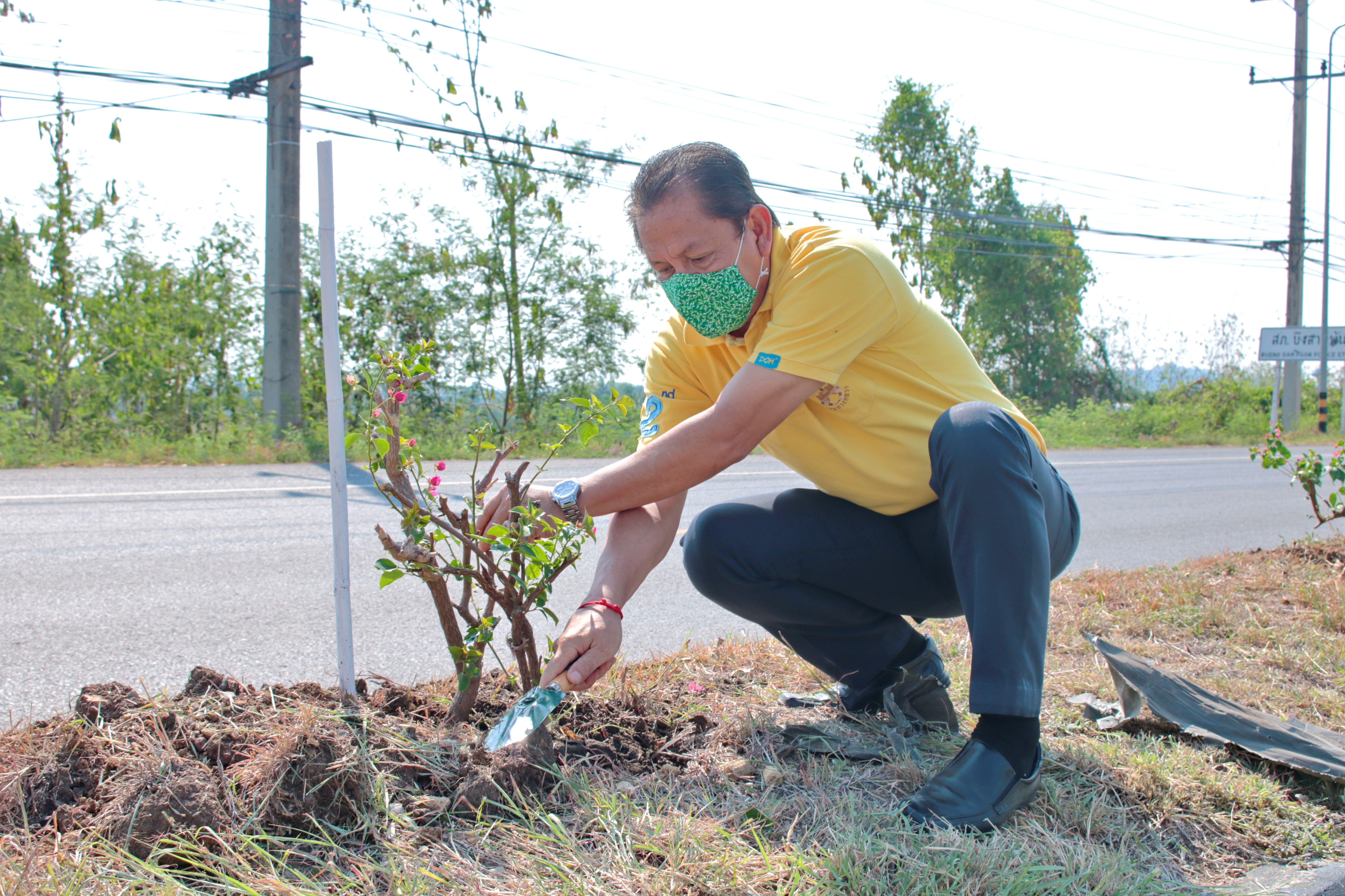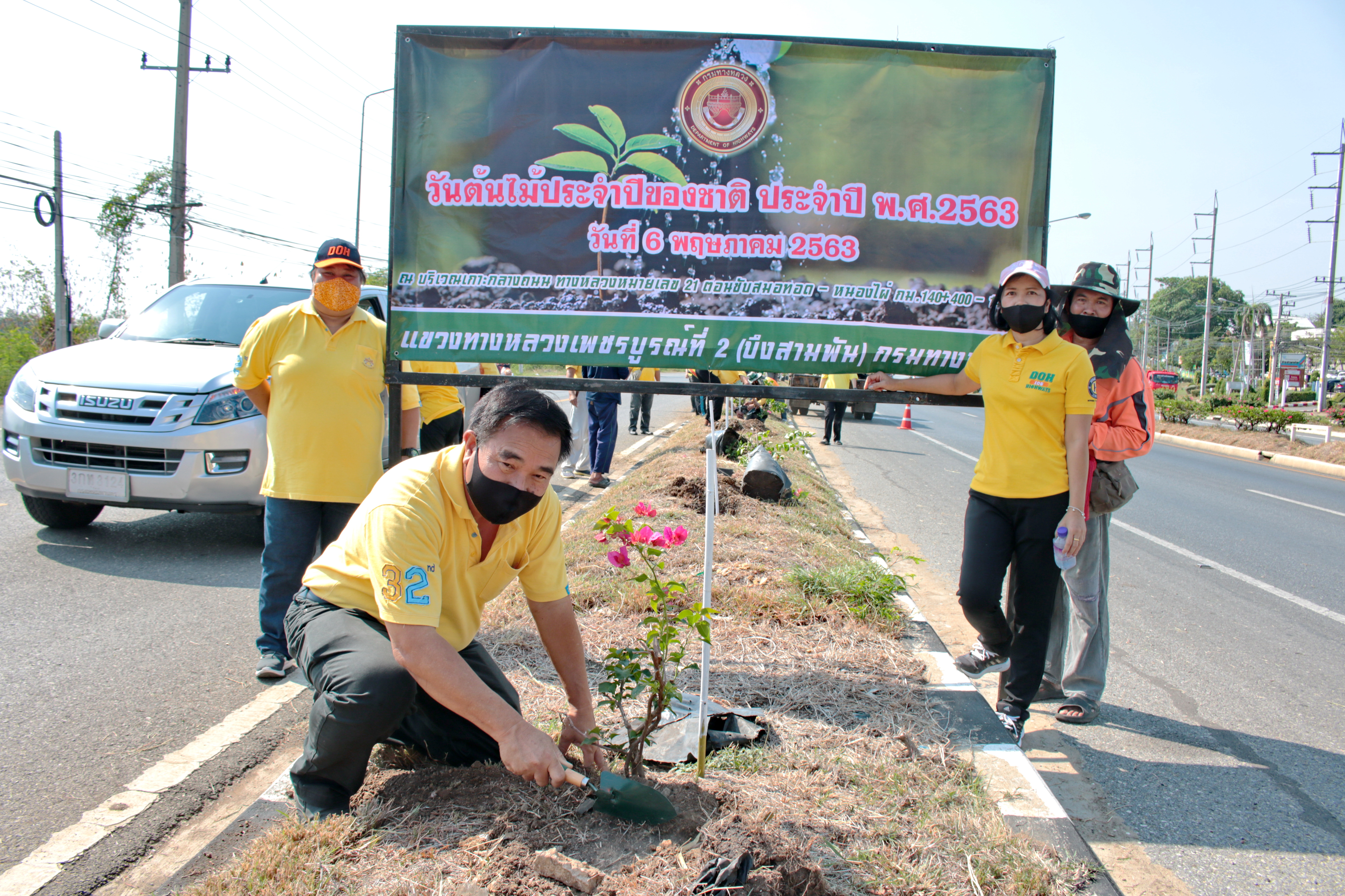 วันที่ 5 พฤษภาคม 2563. เวลา 09.00. น นายชาญวิทย์ จันทร์ทับ ผู้อำนวยการแขวงทางหลวงเพชรบูรณ์ที่ 2 (บึงสามพัน) มอบหมายให้ นายกำธร เจริญพุฒ รองผู้อำนวยการแขวงทางหลวง ฝ่ายปฏิบัติการ นายเฉลิม ศิลพร รองผู้อำนวยการแขวงทางหลวง ฝ่ายวิศวกรรม และเจ้าหน้าที่แขวงฯ ร่วมกิจกรรมวันต้นไม้ประจำปีของชาติ พ.ศ.2563 ในโครงการ “รวมใจไทย ปลูกต้นไม้ เพื่อแผ่นดิน” เฉลิมพระเกียรติ เนื่องในโอกาสมหามงคลพระราชพิธีบรมราชาภิเษก โดยร่วมปลูกต้นเฟื่องฟ้า จำนวน 52 ต้น บริเวณเกาะกลางทางหลวงหมายเลข 21 ตอน ศรีเทพ - ซับสมอทอด ระหว่าง กม 140+400 - กม.146+000